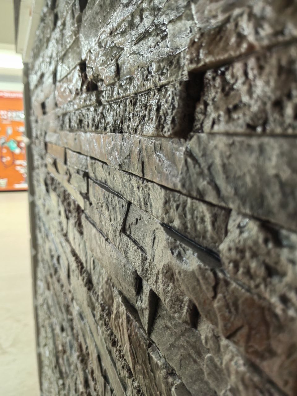 Данный сланец хорошо скрывает неровности стен.